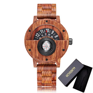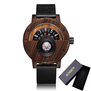 GET THE LOOK✨:Turntable Compass Creative Wood Watch Men Dial Real Walnut Ebony Bamboo Wooden Watches Man Male Brown Black Clock Wrist Reloj
