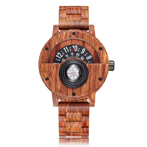 Tocadiscos brújula reloj de madera creativo hombres Dial Real nogal ébano bambú relojes de madera hombre marrón negro Reloj de pulsera Reloj